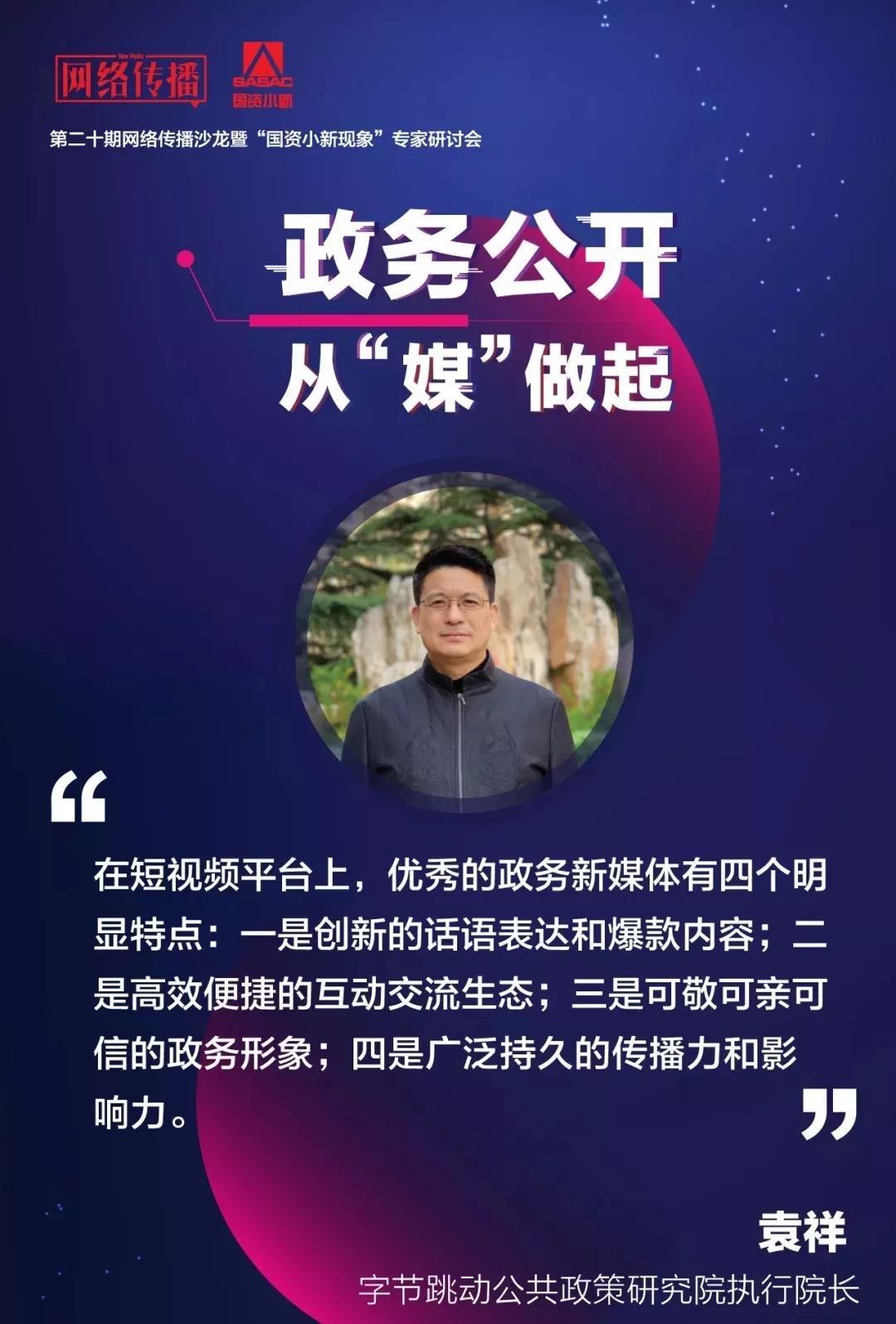 2、创新的话语形态和内容生产。毛主任在“国资小新”抖音开通时发布第一个视频,就是一种“严肃卖萌”的亮相。不到12小时播放200万,11万点赞,15万粉丝。创新的话语用毛主任此前在一次研讨会上的表述就叫“正美奇”。“正“就是传播正能量,但不能一本正经;“美“就是以极致之美吸引用户,严格规避审丑;“奇“就是追求鲜活有趣,可以通俗,但不能低俗。彭兰教授等多位专家对此有过深入的分析,这些观点今天看来还是给人以很多启发。用今天下午闫永主任总结“国资小新为什么新”时所说的话,就是价值观和方法论。当官微迈入短视频时代,央企进驻抖音平台,让更多来自一线接地气、平民化、生动鲜活的优质内容得以展现,呈现出一种新的语态和生态。